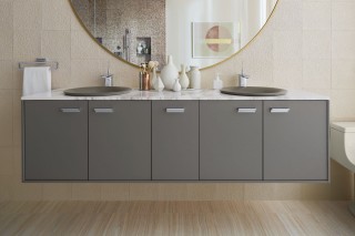 Minimalism may be in, but when it comes to vanities homeowners want more, more, more...when it comes to functionality and storage, that is. Today’s homeowners want the most efficiency out of their bathroom vanity as possible. Clearing the clutter of vanity tops by implementing organization solutions such as makeup organizers, interior electrical outlets, and grooming organizers is the number one concern of homeowners when it comes to their vanity, along with having plenty of space.